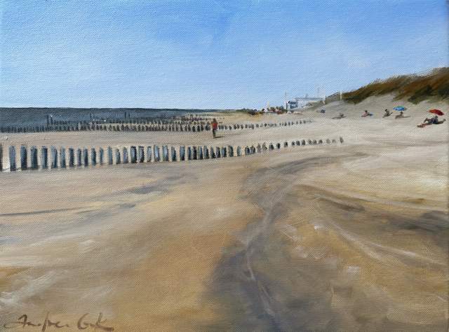 Live op het strand geschilderd.
