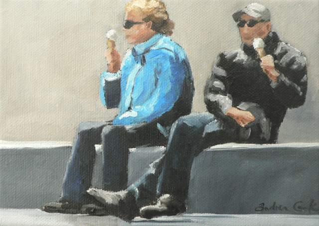 twee mensen geniet van een ijsje