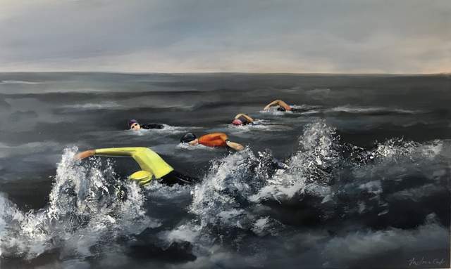 opdracht van een groep openwaterzwemmers