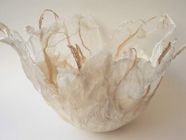 gemaakt van ongeverfd ongesponnen zijden en stukjes van de `saa` boom
