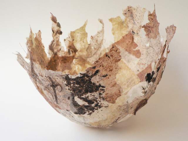 gemaakt van handgeschept papieren van appels, banaanschillen, prei, gras, wilg, abaca, kozo en rabarber
