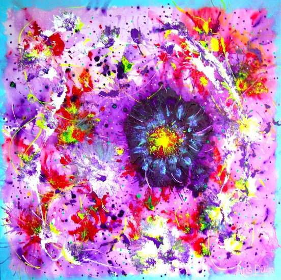 Go with the flow! Colorful painting in beautiful shades, an eye-catcher on the wall. Pastely painted with acrylic on linen.Ask info if you are interested or if you want to see more photos ... You always buy an unique piece! Quality canvases and paint. Size 90 x 90 cm.