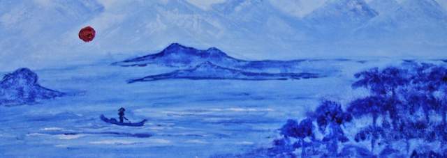 Mooi zeegezicht tussen de bergen met man in bootje, Geschilderd met acrylic op mdf en ingelijst in brede witte lijst. Zachtblauwe bergwand op de achtergrond. Alles geschilderd in blauw en wit. Brede witte lijst om het geheel heen, kan zo aan de muur! Gratis verzending binnen Nederland of ophalen kan ook na afspraak.