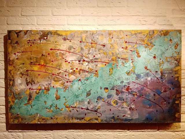 Gemengde techniek met als basis verschillende lagen van teruggewonnen bijenwas( (versterkt met dammar) van mijn eigen ecologisch gehouden bijen.