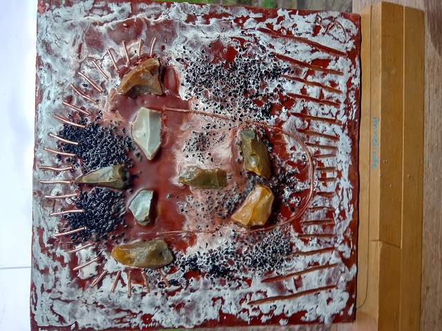 Klein kuunstwerkje ongeveer 30 x 30 cm.