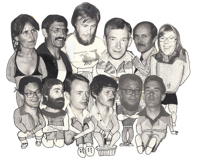 vlnr. boven: Annie Gefertz, thuisclub: Gymnasium Blootbuiken. Egbert Kramer, SSG Blitzkikkers. Hannes Roest, SSG Blitzkikkers, sectie Supermannen. Adriaan Keenel, SSG Blitzbuiken onderdeel zwaarsjouwers. Karel Broens, SSG Poema’s in de praktijk speelt hij voor de Gifgassen. Ursula van Heusden, RSG Slaghoutwerkers.