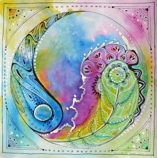 Yin en Yang staan voor dingen die elkaar aanvullen. Bijvoorbeeld de man en de vrouw, maan en aarde, zomer en winter. Het één kan niet zonder het ander bestaan. Als er geen mannen hadden bestaan hadden we niet het onderscheid hoeven maken tussen man en vrouw. Het teken staat symbool voor de gedachte dat alles bestaat met een tegengestelde variant waarvan de één niet beter is dan de ander. De twee dingen zijn dus gelijk aan elkaar en toch verschillend. net als goed en kwaad.