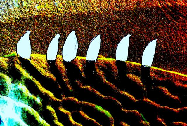 Ribbels in het zand werden woeste golven met bange zeilbootjes op de uitlopers.